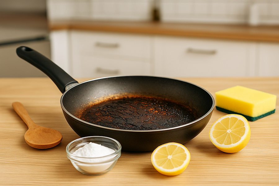 Zobacz, jak bezpiecznie i skutecznie wyczyścić przypaloną patelnię — bez szorowania i bez agresywnej chemii.